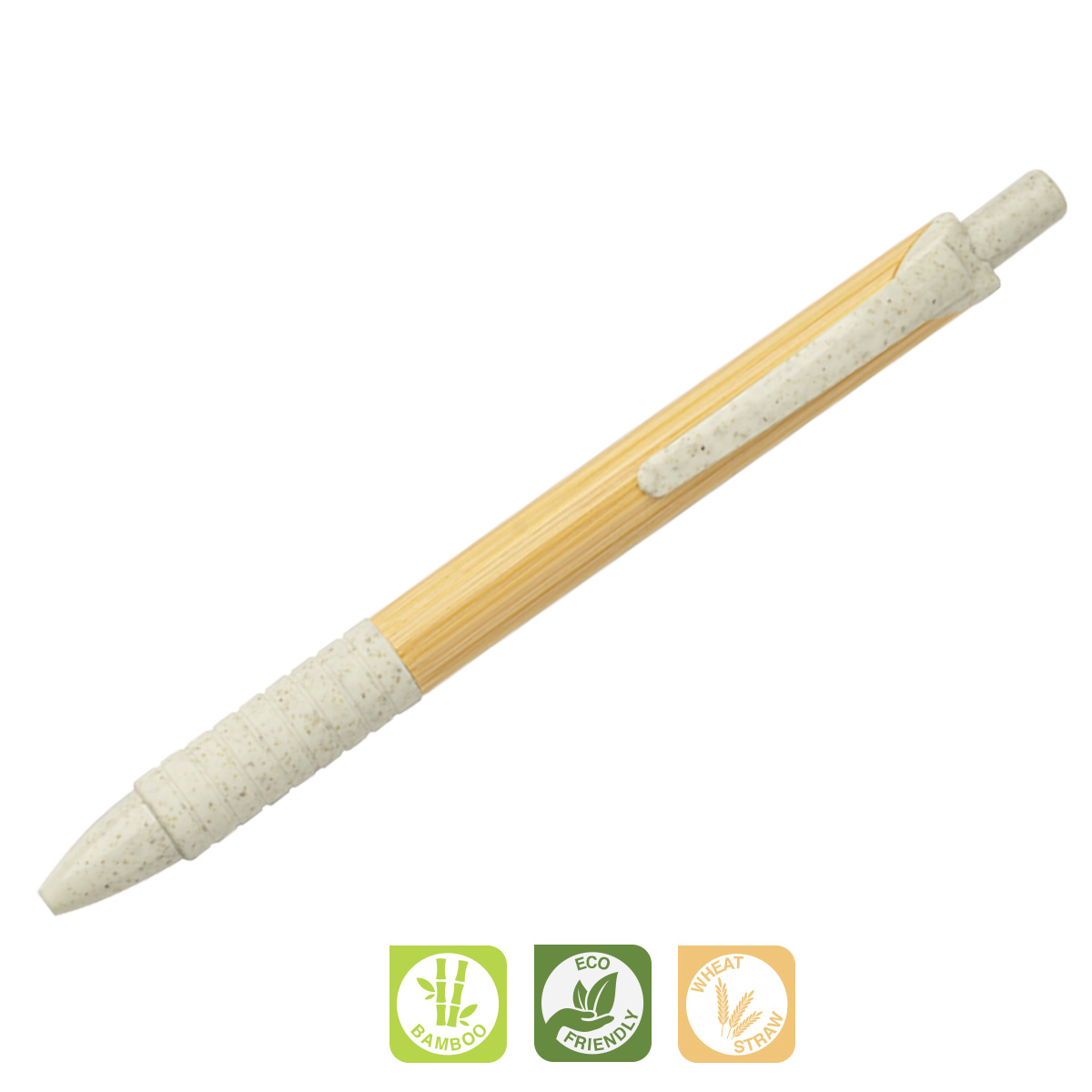 A Bamboo and Wheat Straw pen with silicone grip.
