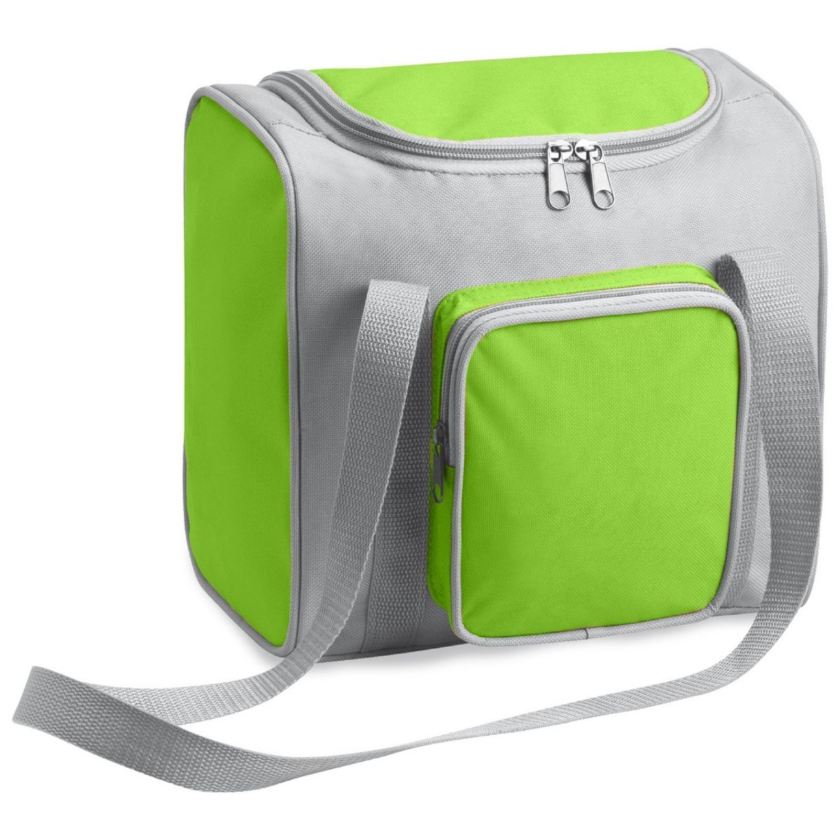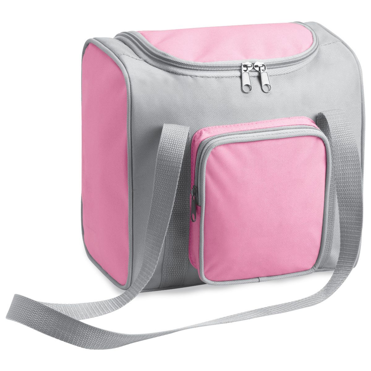 • Snack Pack Cooler  – Two-toned, durable 600D cooler with dual zippered compartments, front pocket, carry handle, and insulated lining. Holds up to 12 cans for all-day freshness.