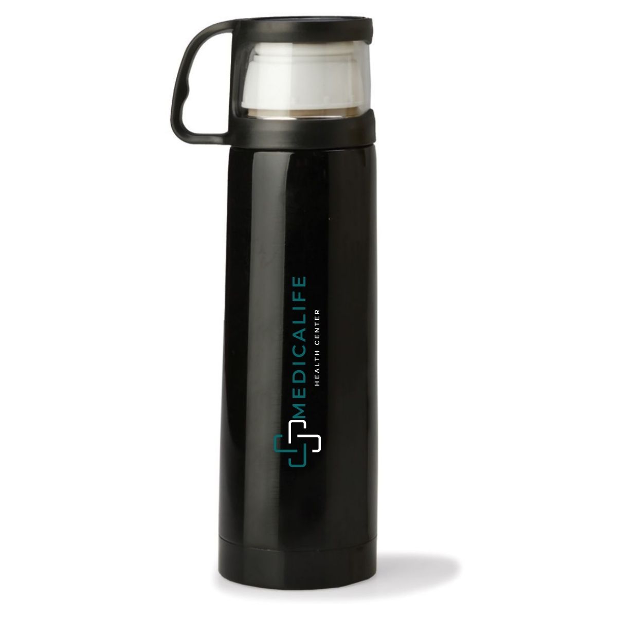 A 500ml Nelo Insulated Flask, crafted from durable stainless steel and PP. It features a stylish design with a removable cap that doubles as a drinking cup, along with a built-in carry handle for easy transport.
